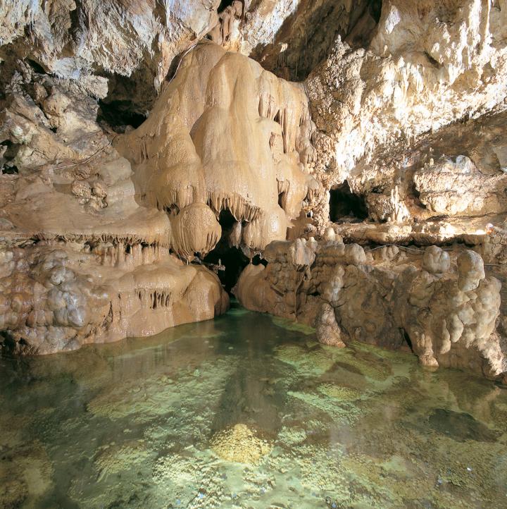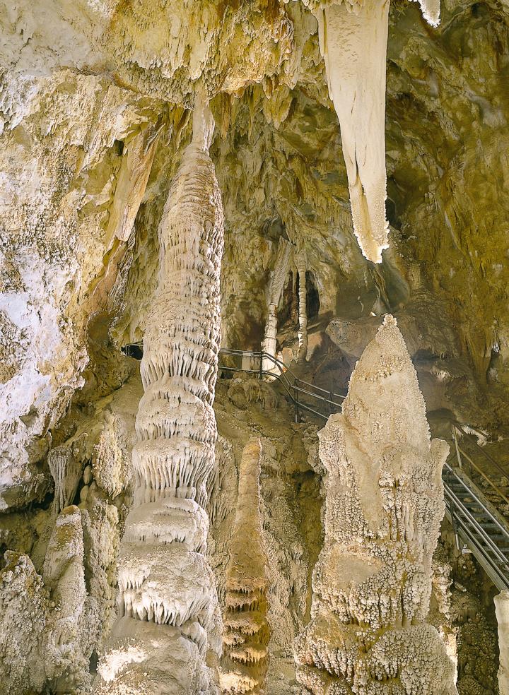 Il clima e’ costante: 16 gradi di temperatura con il 98% di umidità. Il concrezionamento è estremamente ricco e variegato, si va dalle formazioni classiche (stalagmiti a forma di torre di Pisa, stalattiti a spaghetto, coniche, a vela) a quelle piu’ particolari dette eccentriche, ai fiori di calcite, ai cristalli di aragonite, a quelle dall’evidente forma arrotondata detta mammellonare uniche in Europa.